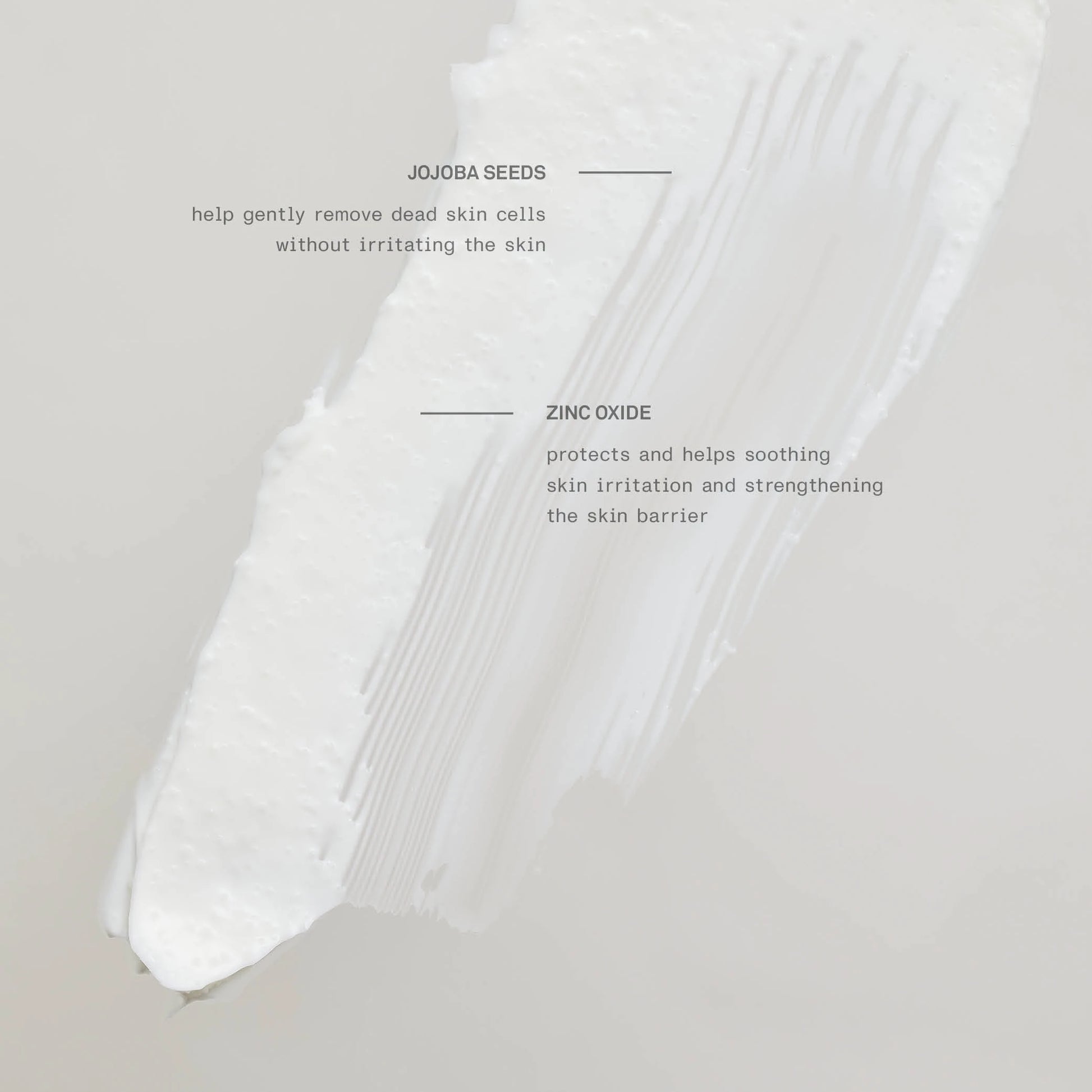 Ansigtsscrub med fine jojobaperler, som eksfolierer huden, fjerner døde hudceller og åbner tilstoppede porer. Huden bliver mere glat og får en frisk glød. Kan anvendes til alle hudtyper, hvor der ønskes en jævnere hudoverflade.