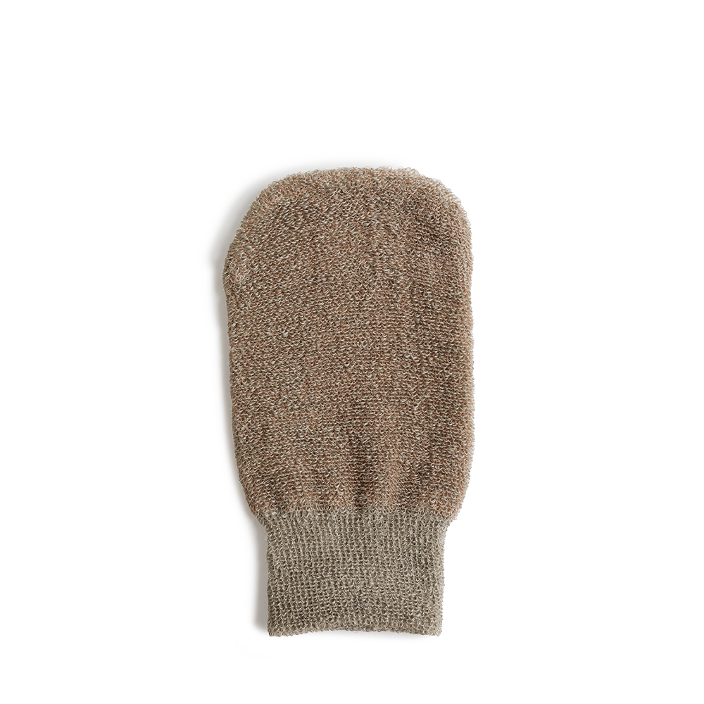 Peeling-handske af hør og kobberfibre – ideel til sensitiv hud.